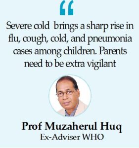 When contacted, Professor Dr. M. Muzaherul Huq, former Adviser of World Health Organisation (WHO) told The New Nation, “Winter typically brings a sharp rise in flu, cough, cold, and pneumonia cases among children. Parents need to be extra vigilant during this season.”