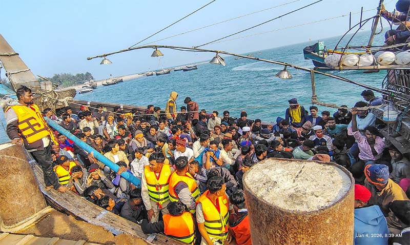 Bangladesh Navy ship ‘Banouja Swadhinata’ patrolling the Bay of Bengal has arrested 273 people in an operation near St. Martin’s Island. They were trying to smuggle them to Malaysia illegally.