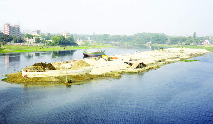 A ship-shaped eco-park takes shape on Chanpara Char at the Shitalakkhya-Balu river confluence at the outskirt of capital Dhaka. The photo was taken on Thursday.