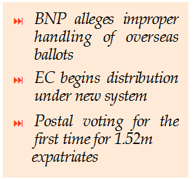 Although postal voting has long existed in Bangladesh for government employees posted outside their constituencies, election officials have, for the first time, extended the system to expatriate voters.
