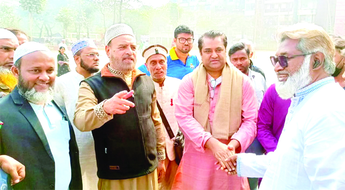 NCP leader Tarek Adel holds an election campaign on Monday with 11-party nominated candidate Enayet Ullah at Iraqi field at