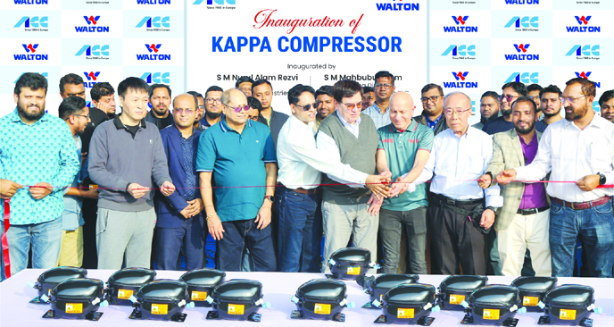 Walton Hi-Tech Industries PLC director SM Nurul Alam Rezvi and managing director SM Mahbubul Alam inaugurate production activities of ACC Kappa compressor this week.