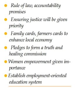 “Both as an individual and as a political activist, I firmly believe that without strict action against corruption, and without establishing the rule of law and accountability, it is impossible to implement any development plan effectively,” he said while unveiling the manifesto.