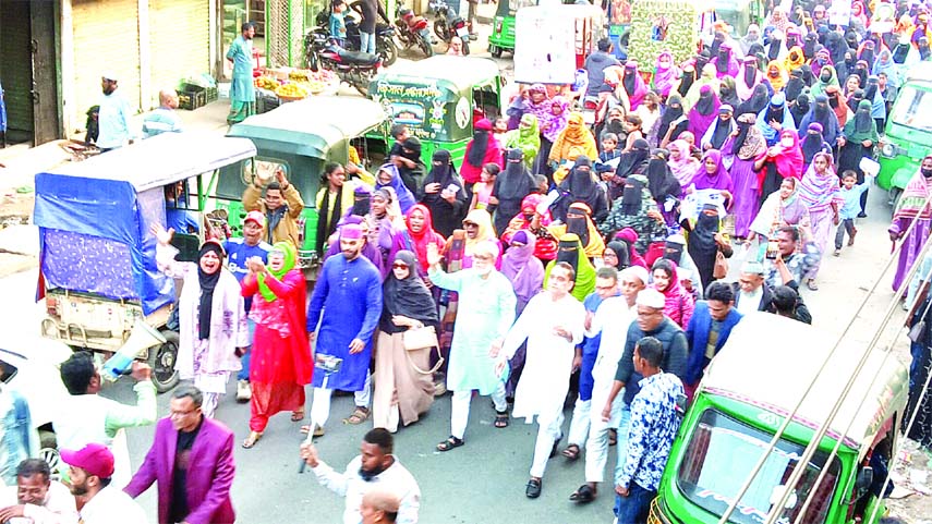 MOULVIBAZAR, KULAURA: A procession by women’s party supporters backing the Sheaf of Paddy symbol was held in Kulaura on Friday.