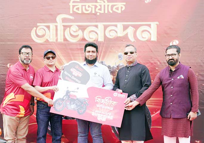 A S M Noman Sarkar of Cumilla has won a Royal Enfield motorcycle as the mega prize of Nagad’s campaign titled “Asha Aar Fera, Surprise Sera.”