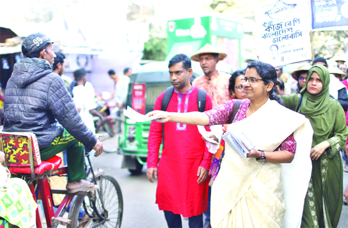 Taslima Akhtar, Ganosanghati Andolan candidate for Dhaka-12 constituency, conducts election campaign.
