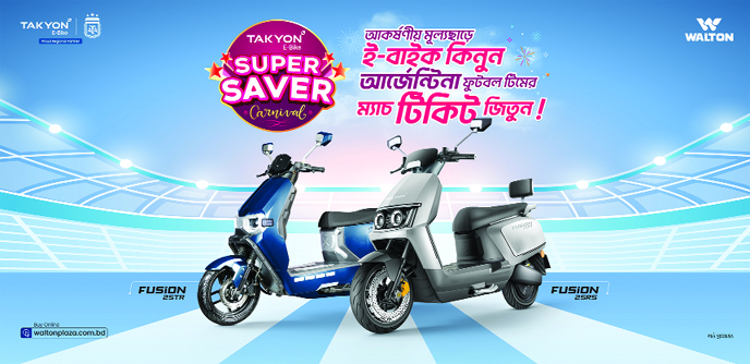 Walton Digi-Tech Industries Limited has come up with a special Super Saver Carnival Offer on its popular electric bike brand Takyon e-bike series. Under this offer, which runs from February 1 to April 30, 2026, customers have the opportunity to get attractive discounts of up to Tk 9,600 on new models as well as exceptional prizes.