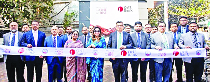 Anannya Das Gupta, a director of ONE Bank PLC, inaugurates the CRM booth at the bank's Gulshan Islamic banking branch on Gulshan Avenue