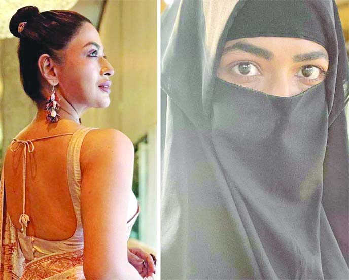 In the post, Badhon shared a collage of two photos. In it, one is seen wearing a burqa, the other is in modern clothes.