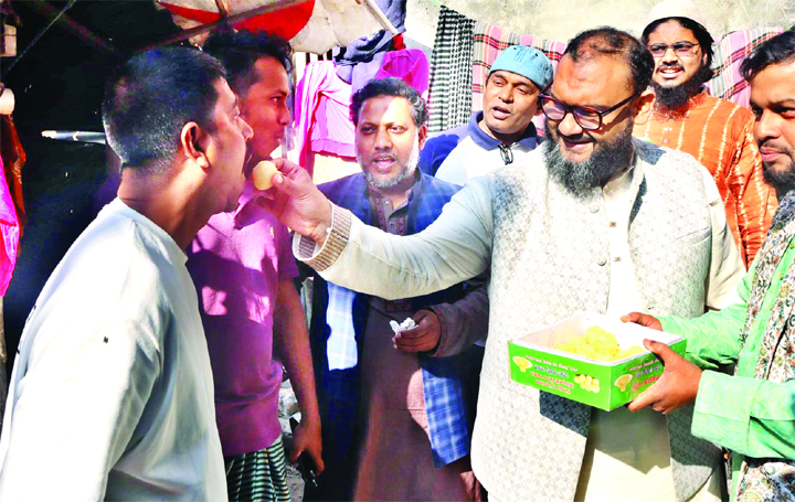 In Dhaka-14, Barrister Mir Ahmad bin Kasem Arman shared festive joy with residents of Shah Ali Thana’s slums, treating them to sweets in a gesture of community celebration post-election.