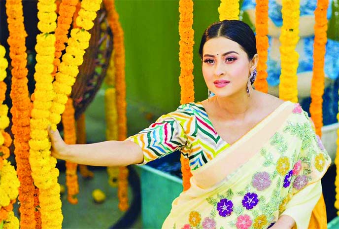 Popular Dhallywood actress Shobnom Bubly has dressed herself in festive colours like everyone else with the arrival of the spring season.