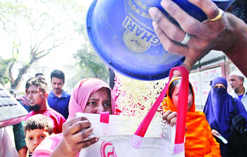 OMS truck sales resumed following a four-day closure, with consideration for lower-middle-income groups before Ramadan. The photo was taken from the capital’s Palashi area on Sunday.