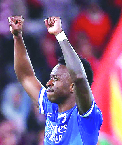 That booking sparked an exchange with Benfica’s Gianluca Prestianni, who pulled his shirt over his mouth before appearing to say something to Vinicius. The Real forward then ran over to referee Francois Letexier and, pointing at Prestianni, seemed to claim he had been called “mono”, the Spanish word for monkey.