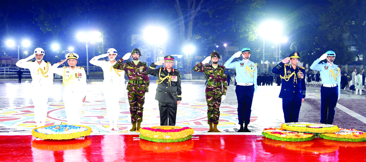 Chief of Army Staff General Waker-Uz-Zaman, Chief of Naval Staff Admiral Mohammad Nazmul Hassan & Chief Marshal Hasan Mahmood Khan