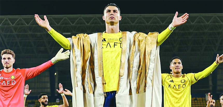 Ronaldo wears a Bisht after becoming the first player to score 500 goals