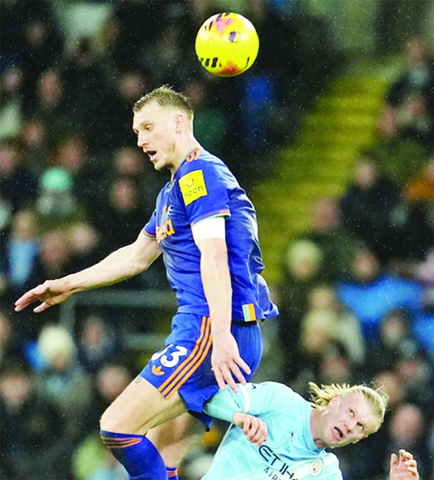 Lewis Hall levelled soon after with a deflected shot but O’Reilly was in the right place again to head in Erling Haaland’s cross in the 27th minute and it proved enough for a 17th successive home Premier League win against Newcastle.