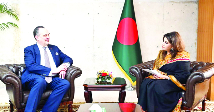 State Minister for Foreign Affairs Shama Obaid on Monday pays a courtesy call on US Ambassador to Bangladesh Brent T. Christensen at her office in the ministry.