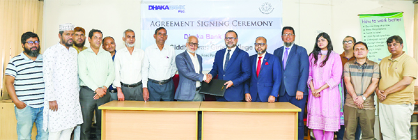 Dhaka Bank PLC, and Professor A B M Mashiul Hossain, Principal of Siddheswari Girls' College sign an agreement on behalf of their respective