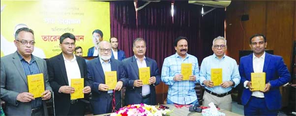 Information and Broadcasting Minister Zahir Uddin Swapan on Tuesday unveils the cover of a book titled "Abisongbadito Tarique Rahman" in the seminar room of the National Theatre Hall of the Bangladesh Shilpakala Academy.
