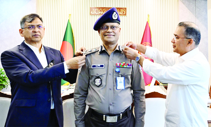 Prime Minister Tarique Rahman accompanied by Home Minister Salahuddin Ahmed on Wednesday pinned the rank badge of 'IGP' on Ali Hossain Fakir at the Secretariat.