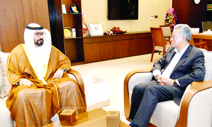 The United Arab Emirates (UAE) Ambassador to Bangladesh Abdulla Ali Abdulla AlHmoudi pays a courtecy call on Finance Minister Amir Khursu Mahmud Chowdhury at the secretariat in the capital on Thursday.