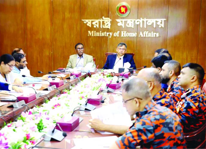 Home Minister Salahuddin Ahmed holds a meeting with the officials of Fire Service and Civil Defence (FSCD) personnel at the Home Ministry in Bangladesh Secretariat on Sunday.