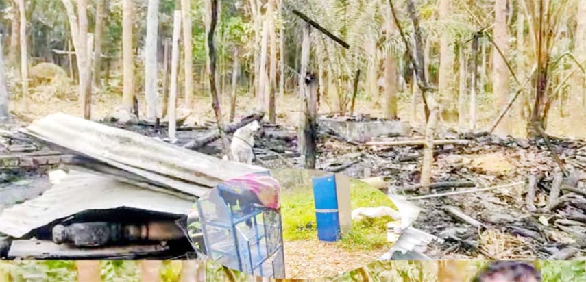 MADHUKHALI, FARIDPUR: Homestead, 3 cows, and a few goats of one Mithu Sheikh burnt to ashes at Purbapara Nili field of Dumain Union in the upazila on Sunday.