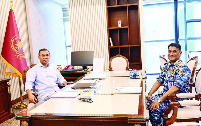 DG of Bangladesh Coast Guard Director General Rear Admiral Md Ziaul Hoque pays a courtesy call on Prime Minister Tarique Rahman at the PMO in the Cabinet Division of the Secretariat on Tuesday.