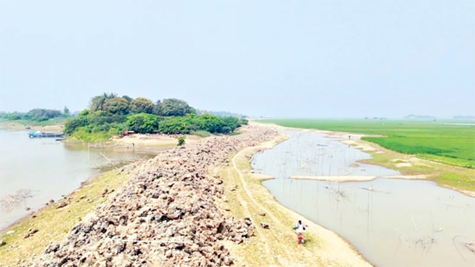 There is a canal-like hole next to the sluice gate on the canal. Soil has not been poured there either. He thinks that if the entire dam had been built with CC blocks at a one-time cost, crores of taka would not have had to be spent every year. His family has cultivated seven acres of land this time.