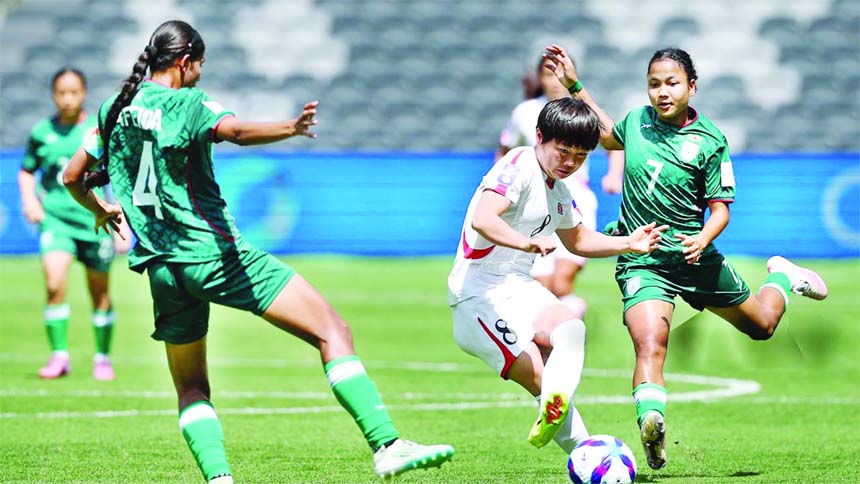An exciting moment of the Group-B match of the AFC Women's Asian Cup between Bangladesh Women's Football team and North Korea Women's Football team at Western Sydney Stadium in Sydney of Australia on Friday.