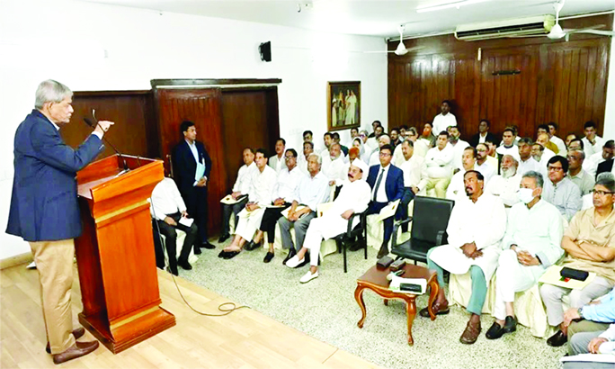 LGRD Minister Mirza Fakhrul Islam Alamgir speaks at a workshop organised for its newly elected MPs held at the party chairman’s office in Gulshan on Saturday.