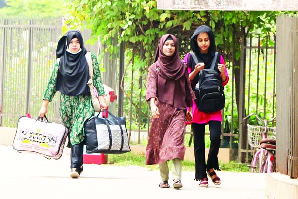 Students leave Rokeya Hall for their hometowns on Monday after authorities announced the Eid-ul-Fitr vacation earlier than scheduled as an austerity measure to help conserve electricity amid a power shortage linked to the ongoing war in the Middle East.