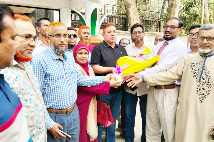 Bogura: The newly-elected parliament member Morshed Milton from Bogura-7 constituency was honoured with a floral wreath by Principal Advocate Md. Jahurul Islam on behalf of Gabtali's Sonaray's Taslim Uddin Tafadar