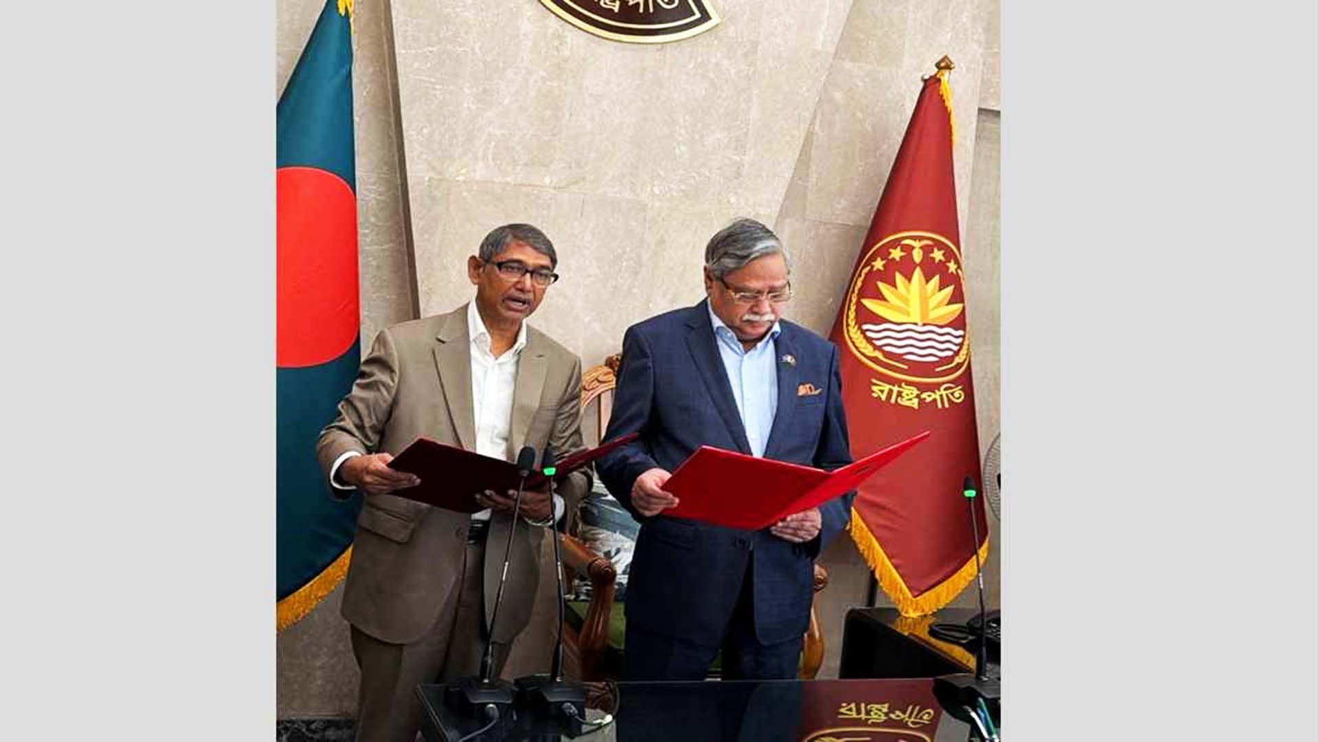 Mohammed Shahabuddin administered the oath of office at the presidential office.