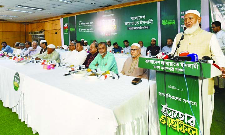 Jamaat-e-Islami chief and leader of the opposition Dr Shafiqur Rahman addresses an Ifter Mahfil honoured to journalists organised by Jamaat-e-Islami Dhaka South at Ladies Club in the city yesterday.