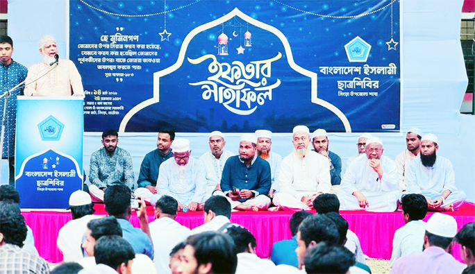 Singra (Natore): Upazila Chhatra Shibir President Al-Amin presides over iftar mahfil held at Gol-e-Afroze Government College field in Singra, Natore on Saturday with Professor Saidur Rahman attending as chief guest.
