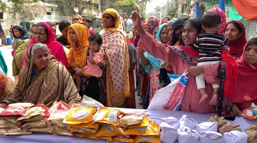The event, titled “Eid Khushir Haat,” allowed people to collect essential food items and clothing for just Tk5.