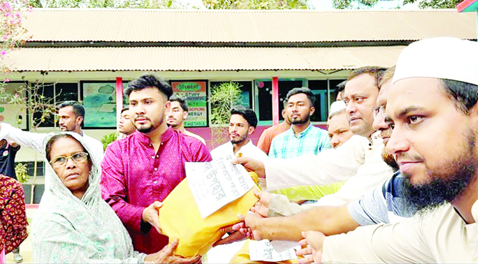 SAVAR: Chhatra Dal leader Taj Khan Naim distributies Eid gifts and essentials to underprivileged and destitute families in Savar municipal area on Tuseday.