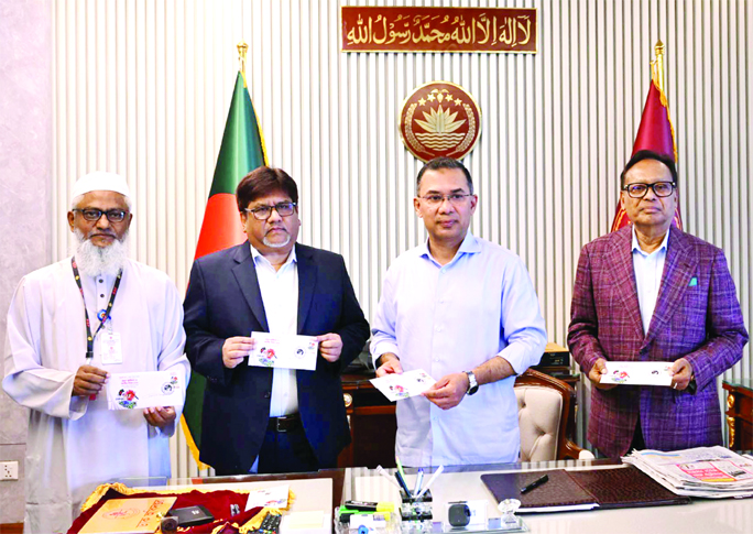 PM Tarique Rahman unveils a commemorative postage stamp to mark Independence and National Day at the Cabinet Division office in the Secretariat on Wednesday.