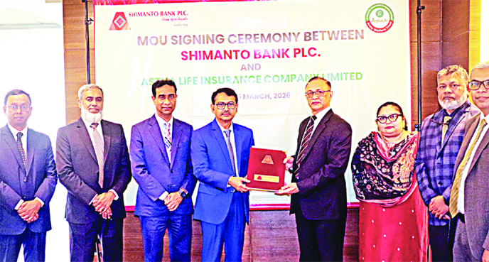 Md Nurul Azim, managing director and chief executive officer of Shimanto Bank PLC, and Brig Gen (retd) Shah Sagirul Islam, chief executive officer of Astha Life Insurance Company Ltd, signed the MoU at the bank’s head office in Dhaka, according to a press release.