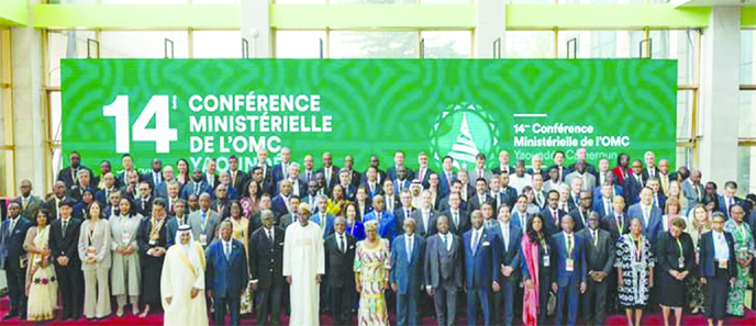 Participants pose for a photo in a session titled “WTO Reform: Fundamental Issues” at the 14th WTO Ministerial Conference (MC14) held in Yaounde, Cameroon on Thursday.