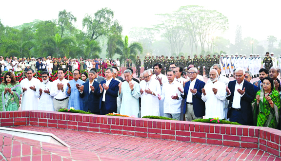 Prime Minister and Bangladesh Nationalist Party (BNP) Chairman Tarique Rahman, along with party leaders, lays a floral wreath at the National Martyrs' Memorial in Savar, and takes part in the prayer on Thursday.