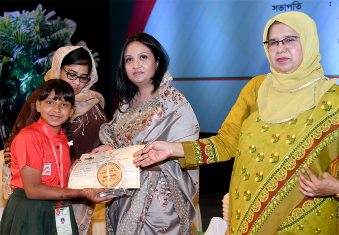 State Minister for Social Welfare Farzana Sharmin distributes awards at the Bangladesh Shishu Academy during discussions, prize-giving, and cultural programmes held to mark the Independence and National Day on Thursday.