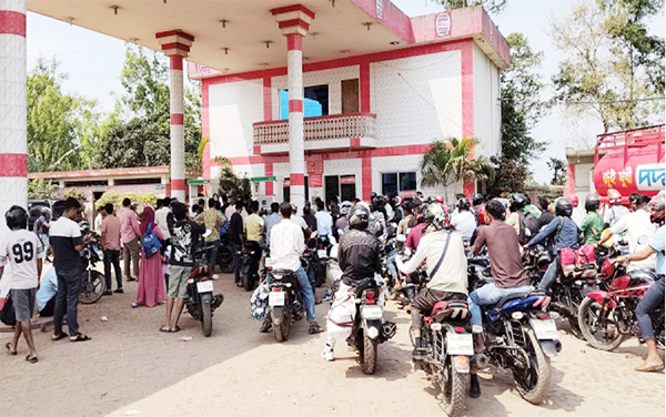 MIRZAPUR (TANGAIL ) : Motorcyclists line up for hours at a fuel station in Mirzapur, Tangail, along the Dhaka-Tangail-Jamuna Bridge highway, as petrol and octane shortages leave many unable to refuel.