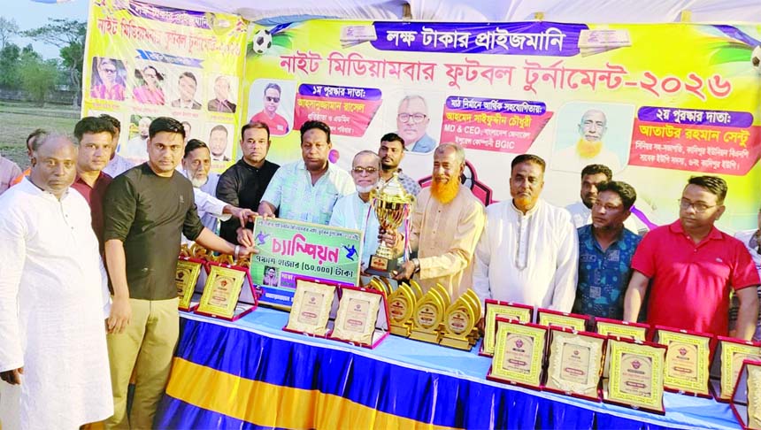Koularashi Football XI, Kadipur, the champions in the Night Mediumbar Football Tournament held