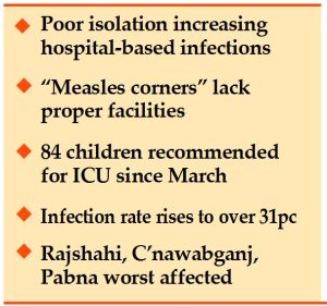 Since early March, at least 84 children in Rajshahi have been recommended for ICU care due to severe complications from measles.