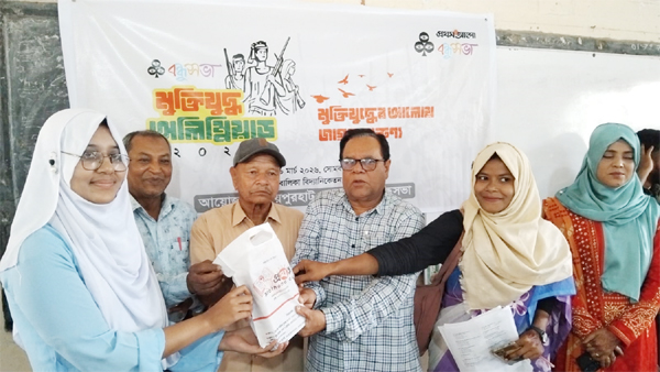 prizes to the winners of the "Muktijuddho-e Aloy" quiz competition in Joypurhat recently.