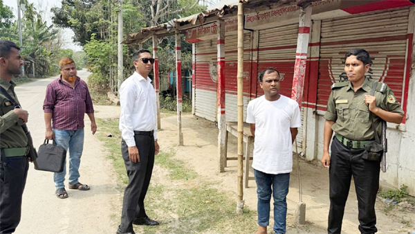 MONUKHALI (FARIDPUR): Executive Magistrate and Assistant Commissioner (Land) Md. Erfaanur Rahman of the mobile court fines retailer Md. Helal Mia Tk 20,000 for selling petrol at a higher price at the open market in Megchami Bazar on Monday.
