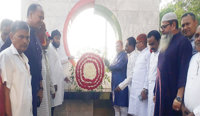 MIRZAPUR (TANGAIL): Abul Kalam Azad Siddiqui, MP, Upazila Nirbahi Officer Khan Salman Habib, freedom fighters and local residents pay homage at Goransatiyachara on the 55th anniversary of the first resistance battle