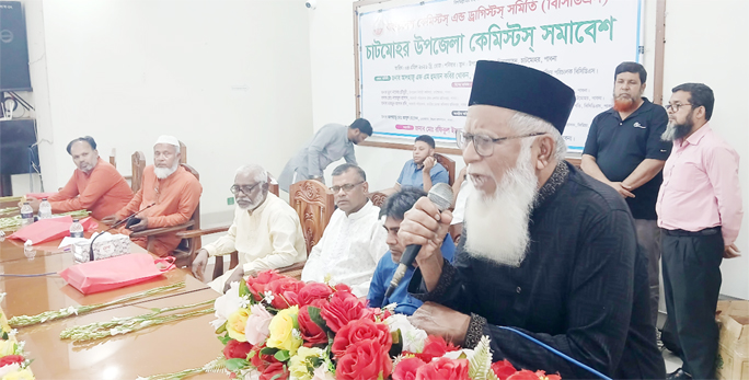 CHATMOHAR (PABNA): Alhaj A.F. Humayun Kabir Khokon, central director of the Bangladesh Chemists and Druggists Association (BCDA) addresses the annual chemists' conference as chief guest, organised by the Chatmohar upazila branch and held at the Upazila Parishad auditorium on Saturday.